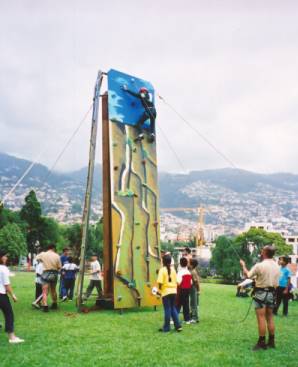 através da montagem duma parede de escalada;