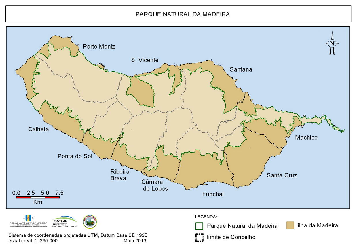 De uma forma geral, podemos referir que praticamente toda a Ilha da Madeira é PNM, com a exceção dos centros urbanos que se localizam maioritariamente na vertente sul, onde reside cerca de 70% da população, e de algumas localidades a norte. O município da Calheta é o que apresenta a mais elevada parcela desta área. Segue-se o do Porto Moniz, com a mais elevada percentagem, cerca de 84% da sua área, enquanto Funchal e Santa Cruz apresentam a menor área de parque natural.